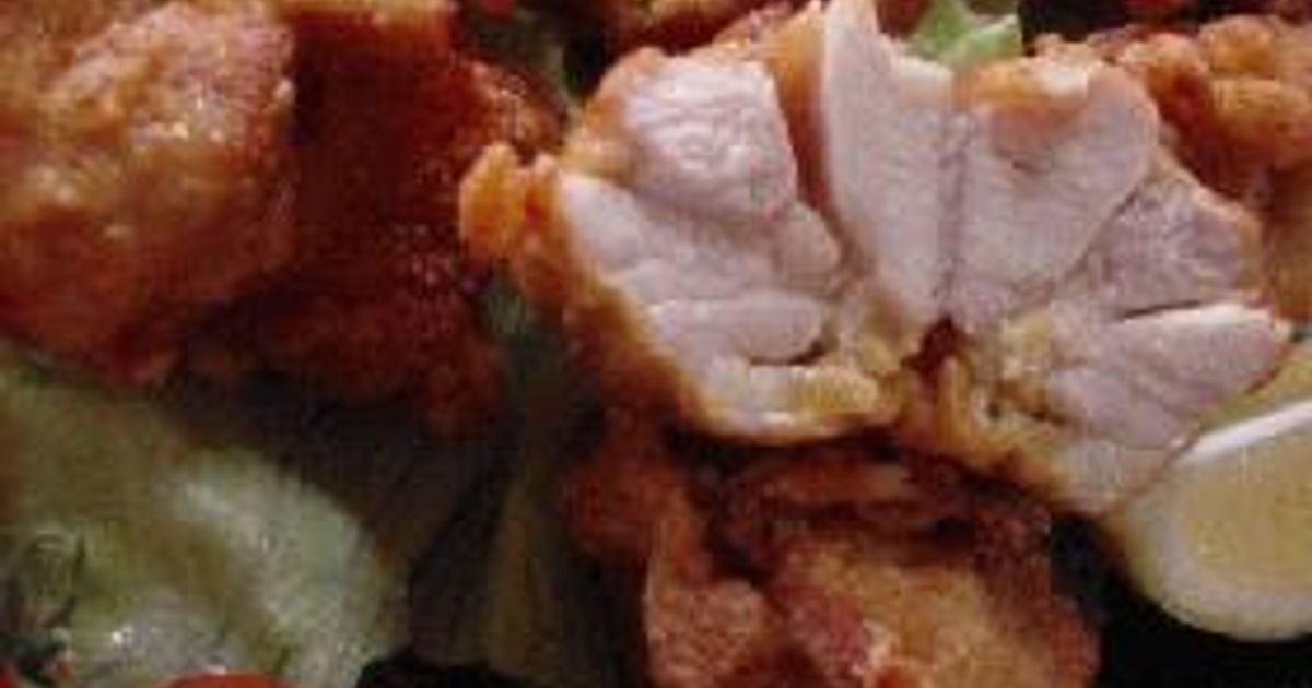 対する唐揚げは、一口サイズの具材に軽く下味をつけ、衣は揚げる直前にはたいて薄めに揚げることが多いです。